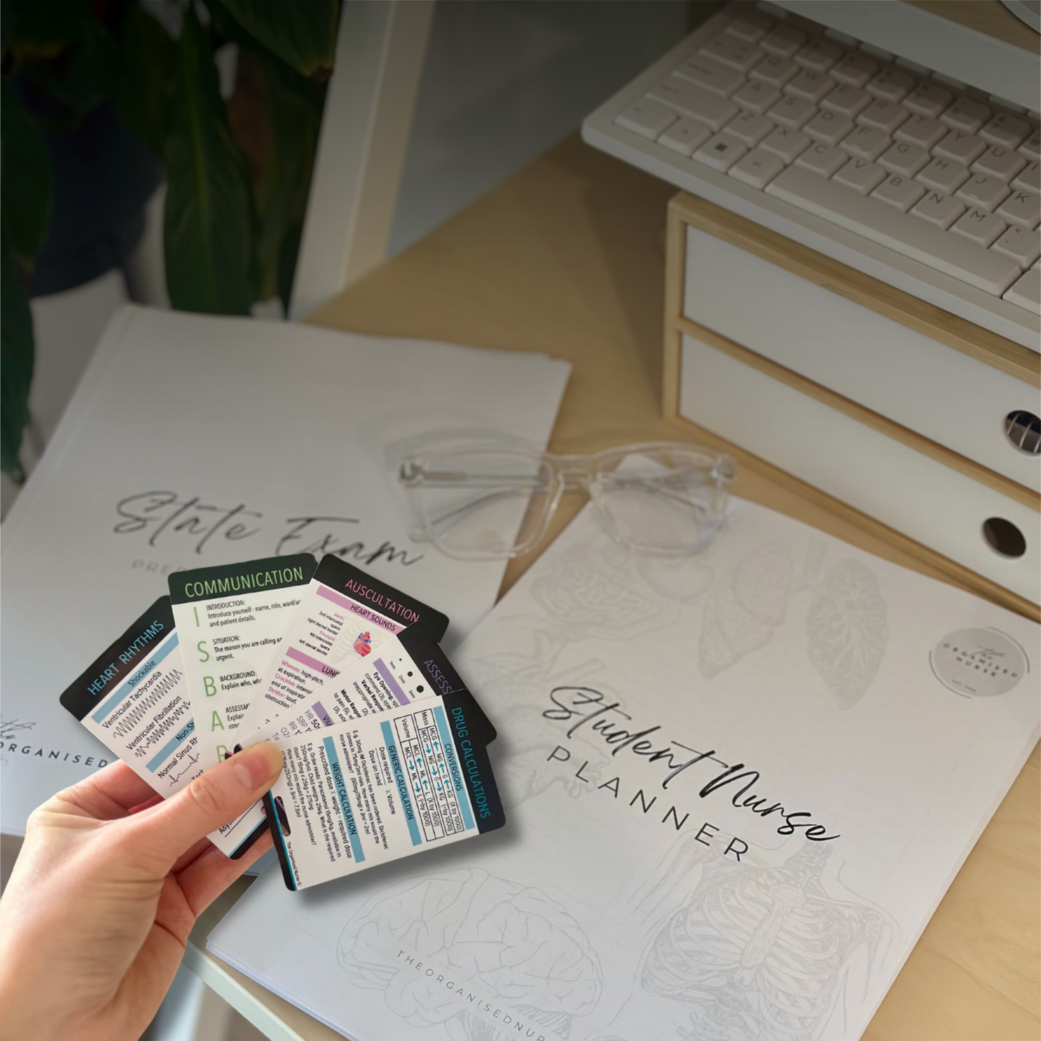 Study tools, reference cards and exam resources designed to support learning and clinical placement.